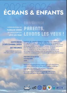 Les associations de parents d’élèves FCPE et PEEP souhaitent vous informer de l’organisation prochaine d’une conférence sur les écrans et leurs effets sur la santé mentale et physique de nos jeunes.